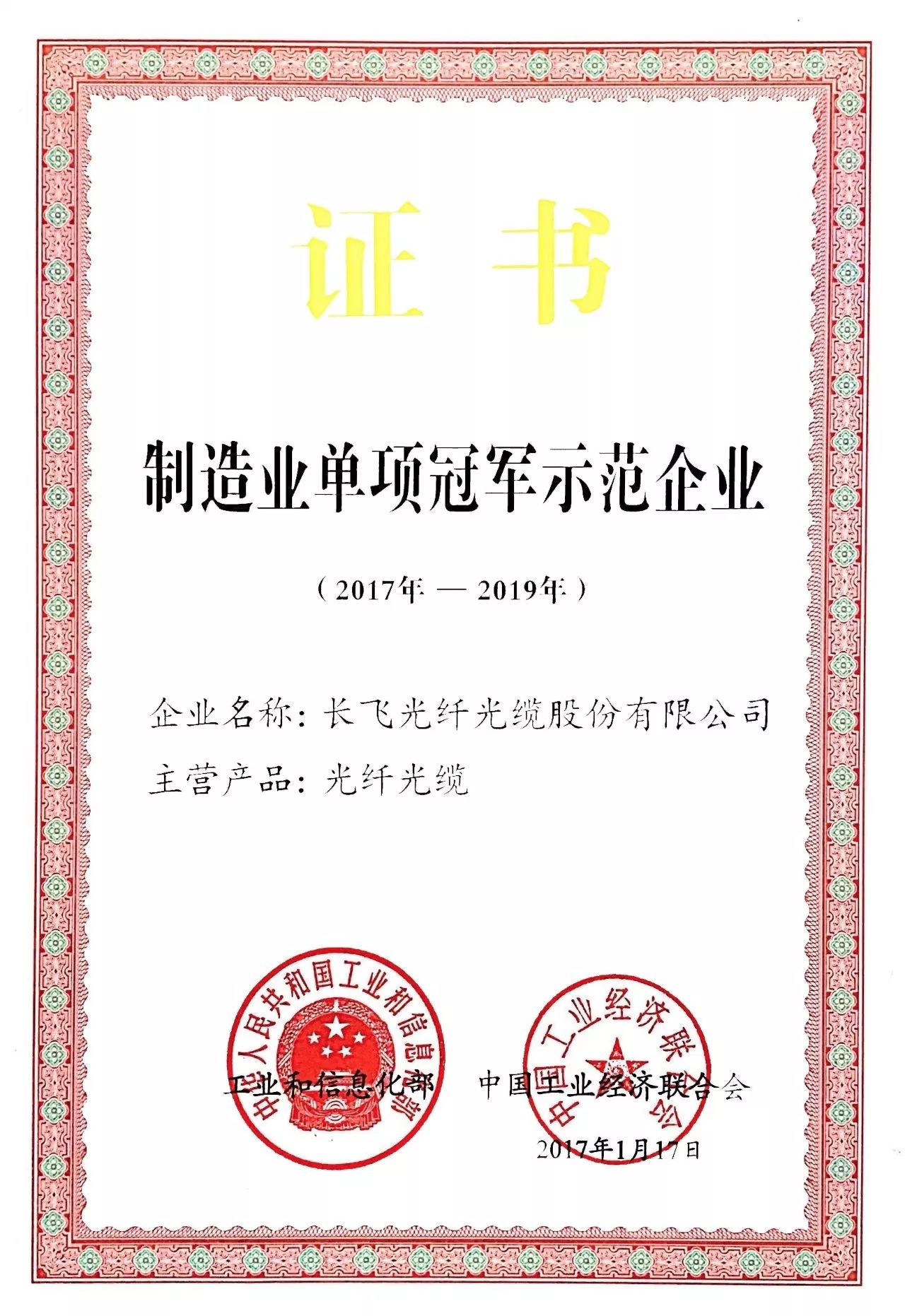 國家工信部于2017年1月17日正式公布了第一批“制造業(yè)單項冠軍示范企業(yè)名單”,長飛光纖光纜股份有限公司(以下簡稱“長飛公司”,股票代碼:6869.HK)成功入選,成為全國首批制造業(yè)單項冠軍企業(yè)之一!
