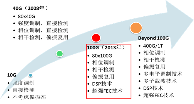 隨著4K、8K、VR、AR以及互聯(lián)網(wǎng)、移動(dòng)互聯(lián)網(wǎng)、物聯(lián)網(wǎng)的飛速發(fā)展,持續(xù)增長的傳輸容量和新型多樣化的傳輸特性進(jìn)一步推動(dòng)光傳輸技術(shù)應(yīng)用和革新。在100G規(guī)模部署的情況下,超100G逐漸進(jìn)入人們的視野。
