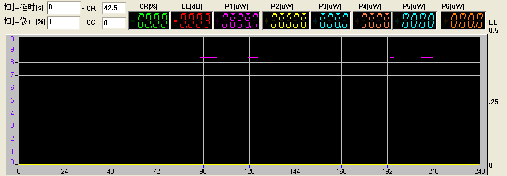 拉錐性能驗證:光纖在熔融拉伸過程中,材料缺陷和波導結構變化等原因,會導致器件的光功率損失。該驗證就是根據器件光功率損耗的大小和器件的穩定性直接評估該光纖是否適合制作熔融拉錐型光纖器件。下圖是PH1010-C光纖進行拉錐得到的功率/損耗曲線,記錄了光纖從開始拉伸直至光纖拉錐機停機整個過程中功率/損耗隨拉伸長度的變化(P1是光纖輸出功率,EL是附加損耗,CR是分光比)。驗證采用1310/1550nm單模泵浦光源,拉錐期間PH1010-C光纖的損耗波動很平緩,損耗始終低于0.1dB。