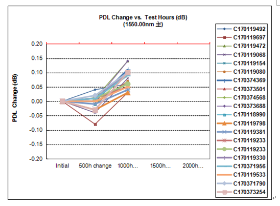 圖4TC測試PDL變化值(Temperature cycle(-40℃~+85℃) ,800 cycles qualification)