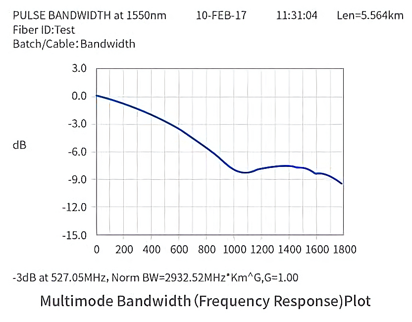 圖3 測溫多模光纖帶寬