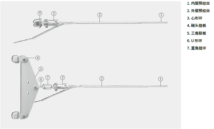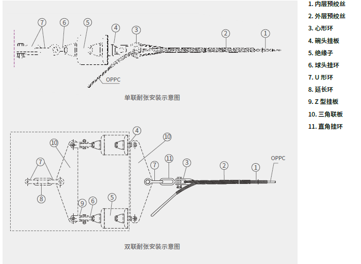 注:我司不提供虛線框部分連接件(絕緣子、球頭掛環、Z 型掛板、三角連板、U 型環、延長環)。