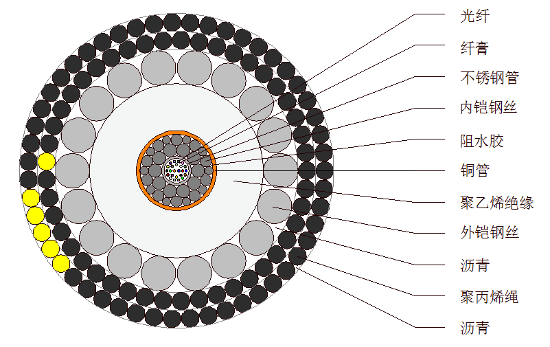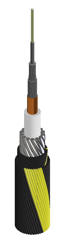 該光纜適用于在敷設、埋設、回收、運行時具有單層鎧裝防護的淺海中特定區域