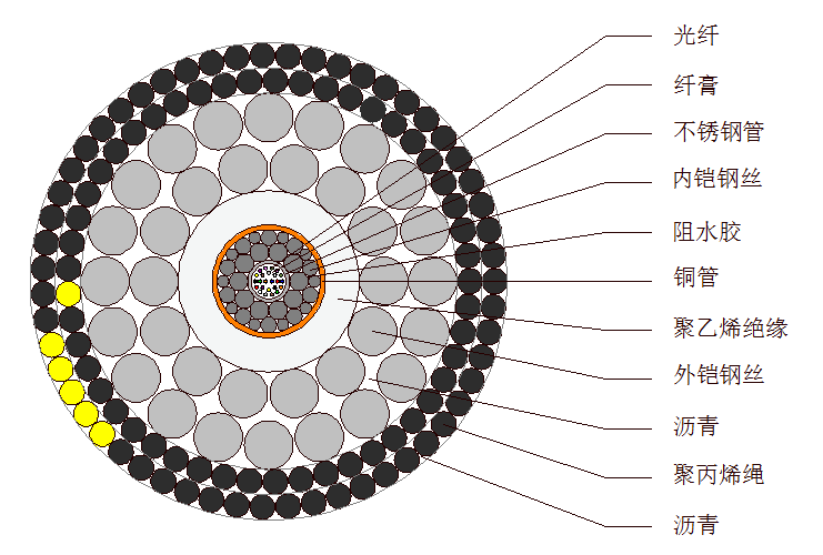 該光纜適用于在敷設、埋設、回收、運行時具有雙層鎧裝防護的淺海中特定區域 |