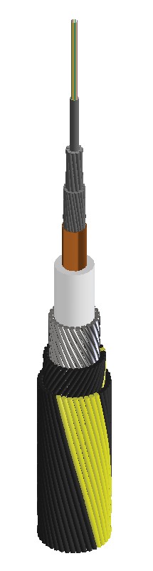帶有單層鎧裝防護的輕型光纜,該光纜適用于在敷設、回收、運行時要求提升一定抗拉性能的特定區域