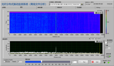 視頻聯(lián)動(dòng)報(bào)警完成現(xiàn)場(chǎng)光纜鋪設(shè)后,進(jìn)行防區(qū)標(biāo)定及設(shè)備安裝調(diào)試,即將光纜長(zhǎng)度與實(shí)際物理長(zhǎng)度相對(duì)應(yīng)以進(jìn)行防區(qū)設(shè)置,同時(shí)根據(jù)不同位置光纜振動(dòng)靈敏度的不同進(jìn)行防區(qū)振動(dòng)閾值的配置。系統(tǒng)可在軟件層面進(jìn)行防區(qū)配置,具備極大靈活性,后期可根據(jù)光纜長(zhǎng)度的改變進(jìn)行防區(qū)的修改,同時(shí)可以靈活配置防區(qū)振動(dòng)報(bào)警閾值,并可以通過(guò)時(shí)域上振動(dòng)持續(xù)時(shí)間及空間上的振動(dòng)范圍調(diào)整報(bào)警策略。設(shè)備安裝在監(jiān)控機(jī)房中,由監(jiān)控室到防區(qū)起點(diǎn)位置埋設(shè)約400米通信光纜,機(jī)房安裝設(shè)備包括分布式振動(dòng)探測(cè)主機(jī)一臺(tái)、48路繼電器聯(lián)動(dòng)模塊兩臺(tái),分布式振動(dòng)探測(cè)主機(jī)進(jìn)行振動(dòng)信號(hào)的處理、分析和報(bào)警信息存儲(chǔ),聯(lián)動(dòng)模塊將振動(dòng)報(bào)警信號(hào)轉(zhuǎn)換為開(kāi)關(guān)量信號(hào)輸出給視頻報(bào)警主機(jī),進(jìn)行視頻聯(lián)動(dòng)。