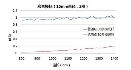 圖1 抗彎多模光纖與常規多模光纖宏彎性能比較
