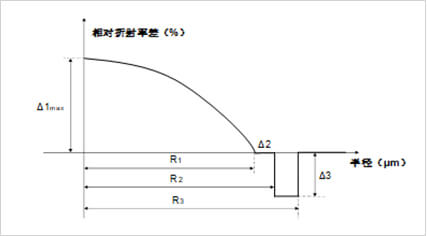 抗彎曲性能是通過下陷內包層的折射率剖面設計來實現的,抗彎曲多模光纖的折射率剖面見圖2。抗彎曲多模光纖與普通多模光纖宏彎性能比較見圖3。抗彎曲性能的顯著提升為數據中心復雜密集布線提供了更高的可靠性保障。