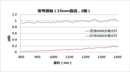 圖3 抗彎曲多模光纖與普通多模光纖宏彎性能比較