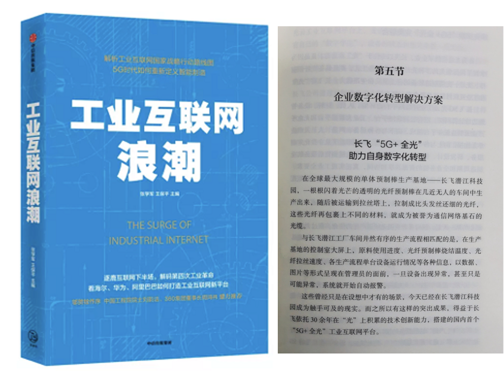 工信部指導(dǎo)的《工業(yè)互聯(lián)網(wǎng)浪潮》一書(shū)出版,將長(zhǎng)飛公司的“5G+全光網(wǎng)絡(luò)解決方案”作為重點(diǎn)案例向全國(guó)推廣。