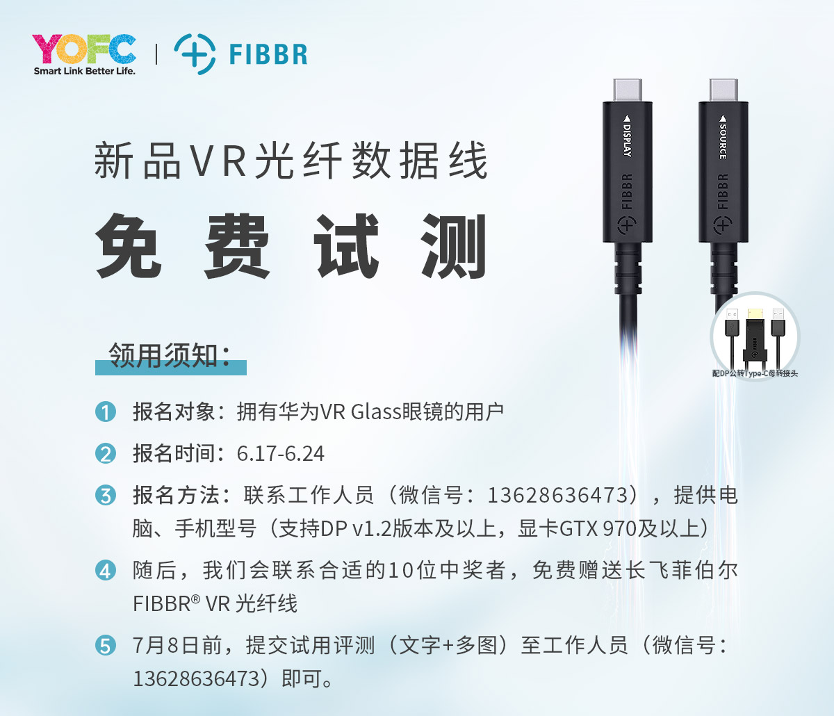 該VR光纖數據線采用目前市場上正在全面普及的全能type-C接口,可支持手機/計算機投屏功能、手機和計算機數據交互功能,VR/家居/辦公,一根就夠。新品推出之際,特開啟免費試測活動,歡迎大家踴躍報名,期待大家的暢玩發(fā)現。