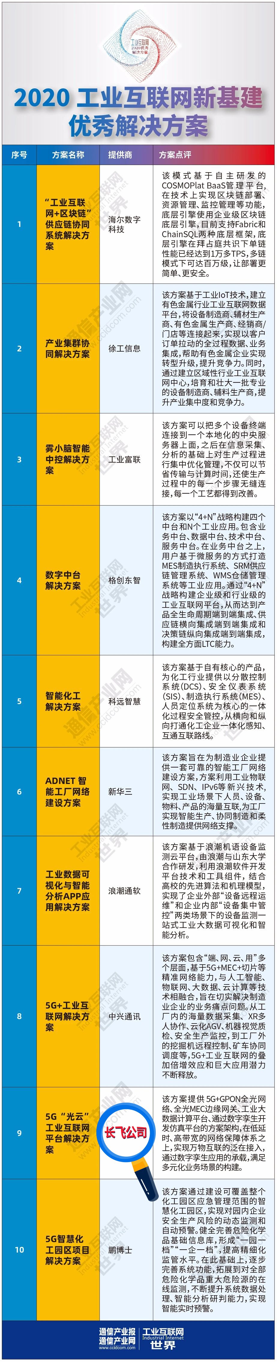 在今年的全國兩會上,“工業互聯網”第三次被寫入政府工作報告,從“打造工業互聯網平臺”提升為更加全面的“發展工業互聯網”,迎來全面發展與提速時期。工業互聯網被劃為新基建的重要領域之一,同時也成為國內新舊動能轉換的一大主引擎,正迎來多方加速布局,基于此,《通信產業報》全媒體與《工業互聯網世界》編輯組通過企業申報、編輯推薦、專家評審等方式,最終評選出“2020工業互聯網新基建企業TOP30”、“2020工業互聯網新基建優秀解決方案”。