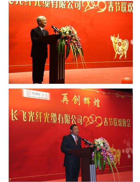2009年1月20日,長飛公司2009年新春聯(lián)歡晚會在武漢市東湖新技術(shù)開發(fā)區(qū)科技會堂隆重舉行。市政府常務(wù)副市長袁善臘先生、市政府副秘書長唐惠虎先生、東湖開發(fā)區(qū)工委書記、管委會主任劉傳鐵先生、市商務(wù)局副局長王昊先生、市科技局副局長孫明安先生等領(lǐng)導同長飛公司全體員工及家屬一道共同聯(lián)歡,喜迎2009年新春佳節(jié)。
