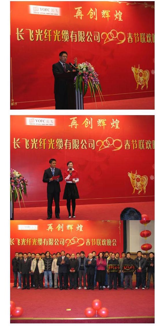 會上首先請袁副市長、長飛公司董事長文會國先生、董事鄭慧麗女士、長飛公司總經(jīng)理徐錫洲先生等領(lǐng)導對獲得“2008年度長飛公司崗位能手”、“生產(chǎn)質(zhì)量之星”、“優(yōu)秀共青團員”和“青年文明號”等榮譽稱號的員工進行了表彰和頒獎。接著,長飛公司文會國董事長、徐錫洲總經(jīng)理就長飛公司2008年工作中所取得的成績和未來公司發(fā)展戰(zhàn)略及目標向市領(lǐng)導和全體員工家屬進行了匯報。并要求長飛全體員工要再接再厲,繼續(xù)努力工作,將長飛公司建設(shè)成為在全球光纖光纜行業(yè)領(lǐng)先的企業(yè)。
