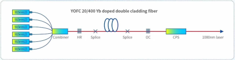 1. 高功率光纖激光器用20/400雙包層摻鐿光纖
